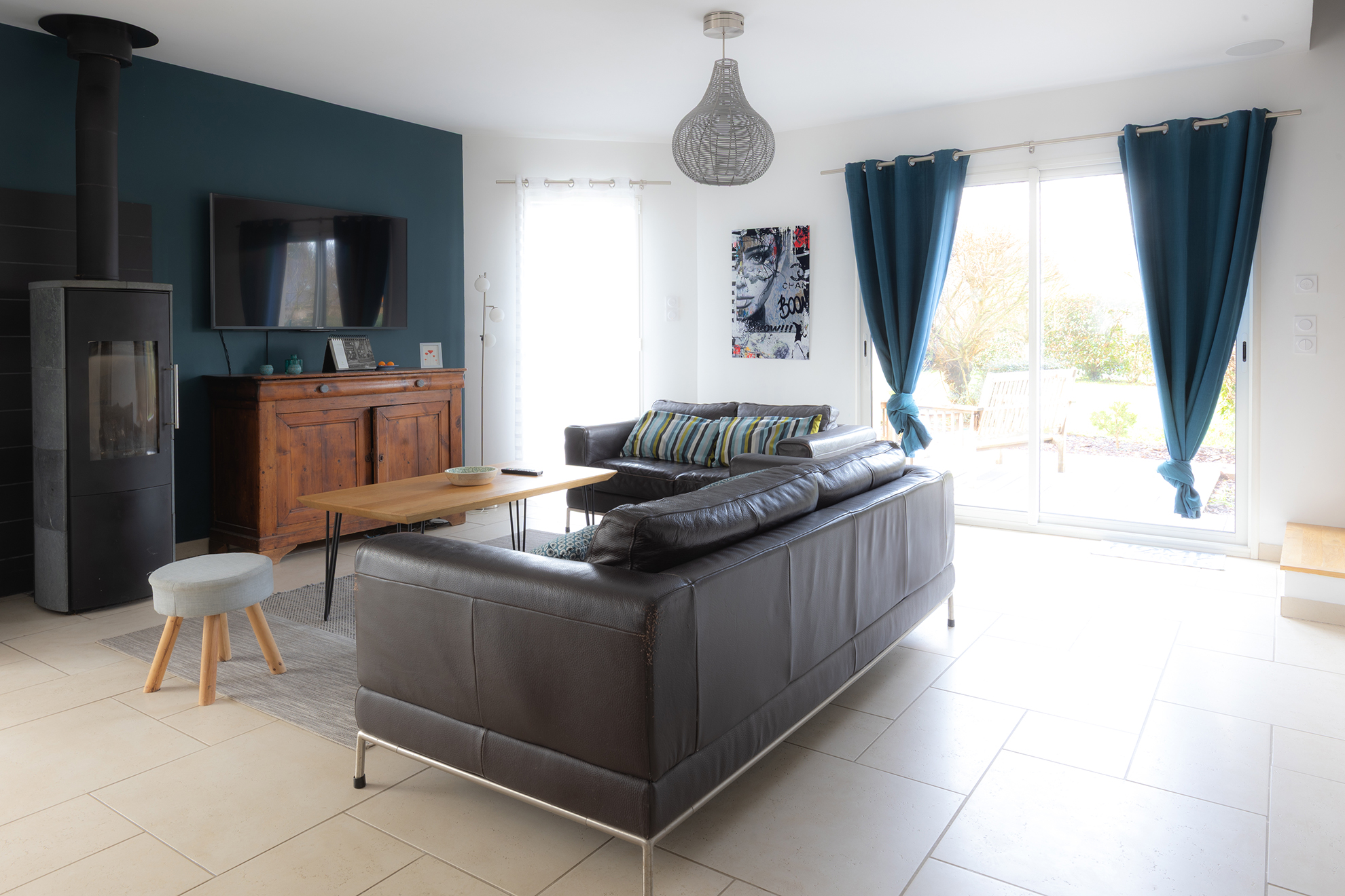 Grande pièce de vie de 55m2 baignée de lumière, équipée d'un poêle à bois pour les soirées hivernales, une télévision grand écran avec 220 chaines dont Netflix. De larges baies vitrées s’ouvrent sur la pergola prolongeant harmonieusement l’espace vers l’extérieur. Cuisine ouverte entièrement équipée, alliant fonctionnalité et convivialité. Son implantation ouverte sur la pièce de vie permet de rester connectés à vos proches pendant la préparation des repas. Un WC indépendant. Suite parentale cosy (lit de 160) avec sa propre salle d’eau équipée d’un lavabo et d’une douche.